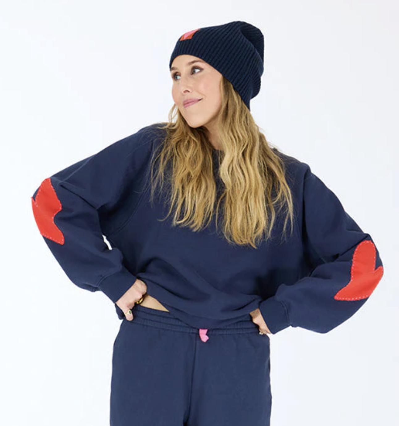 - Crewneck raglan sweatshirt & patched Heart elbows, ribbed sleeve & hem