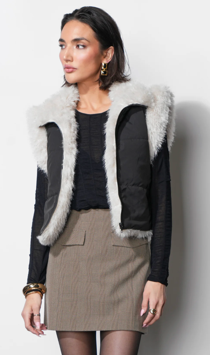 Clara Faux Fur Lined Padded Zip Up Vest