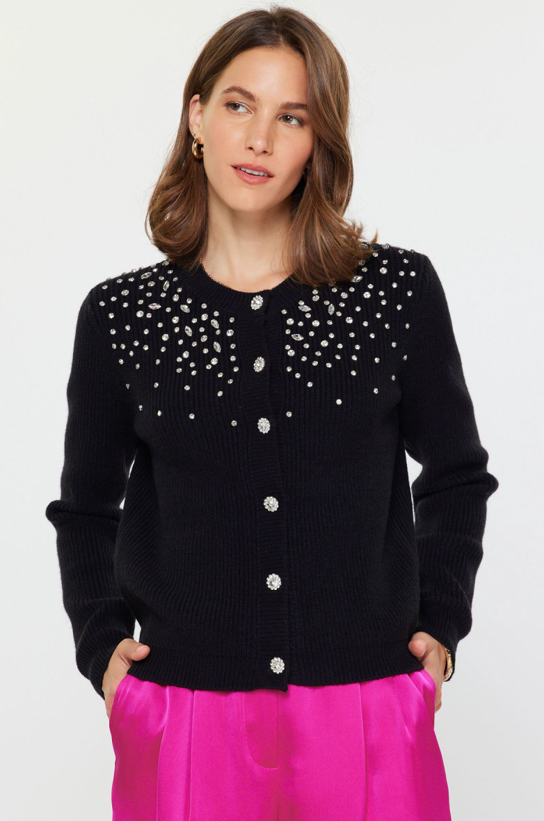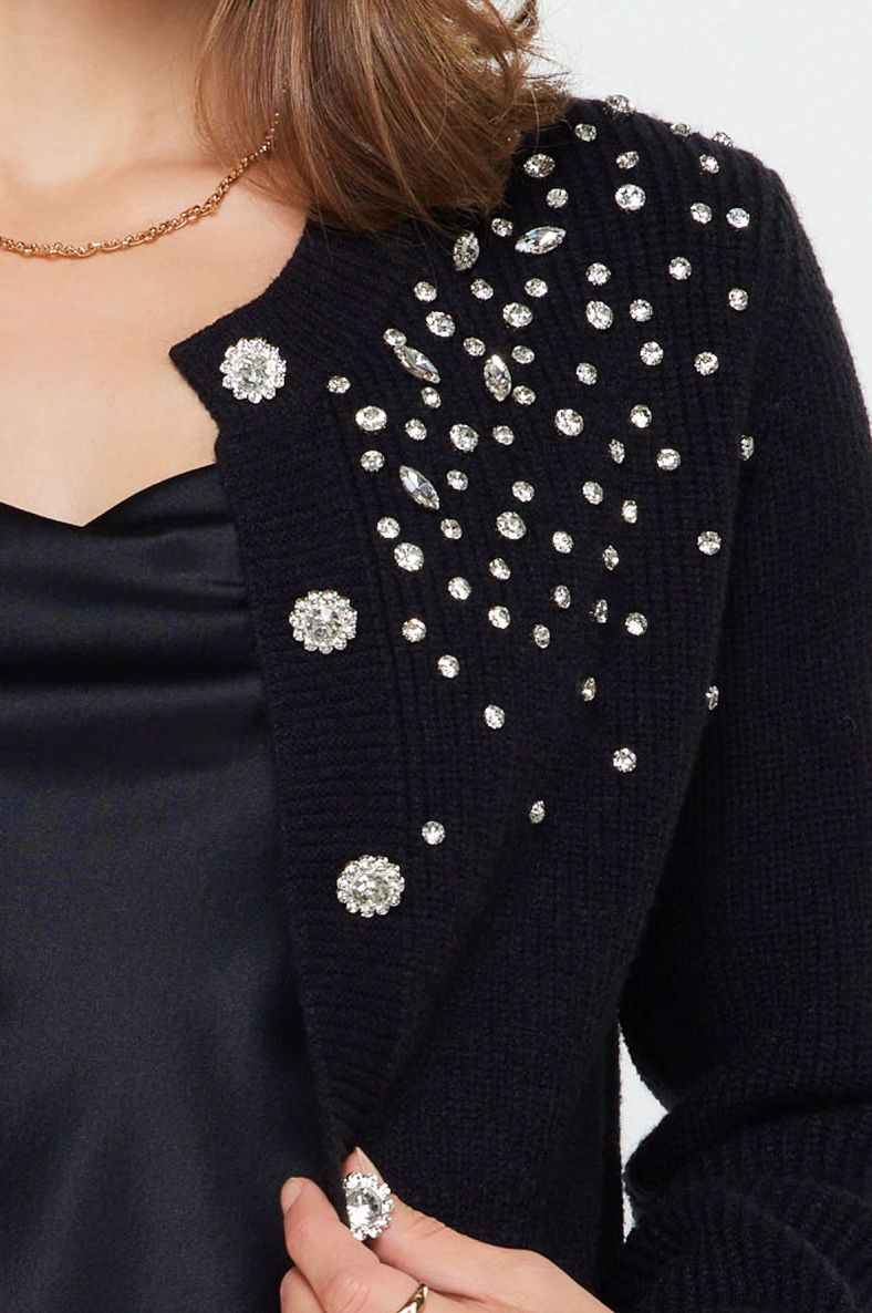 - Rhinestone flower button front