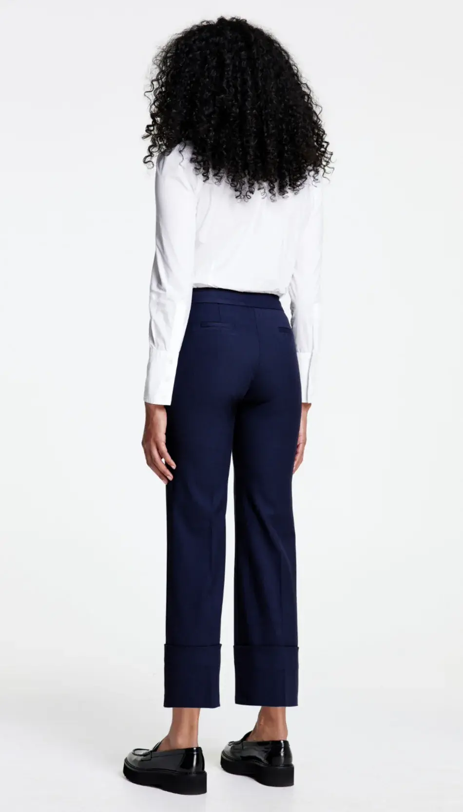 Create an accountWith its versatile mid-rise, this stretch silhouette is fitted through the waist and hips and features a straight cropped leg. Wide cuffed hems lend a directional edge.