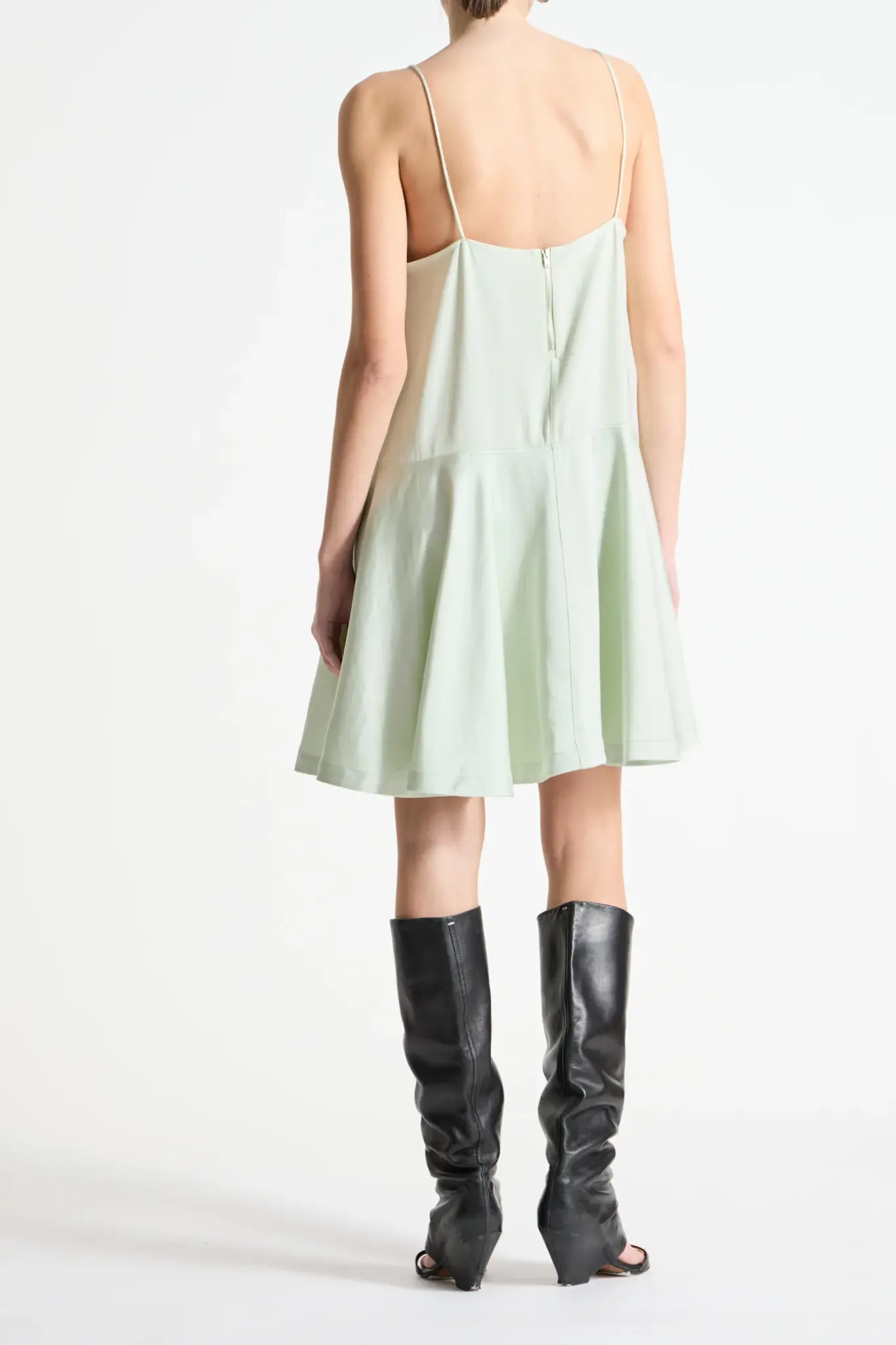 - Exposed center back zipper