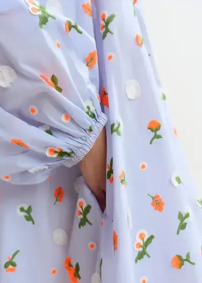 - Voluminous 3/4 sleeves with elasticated cuffs