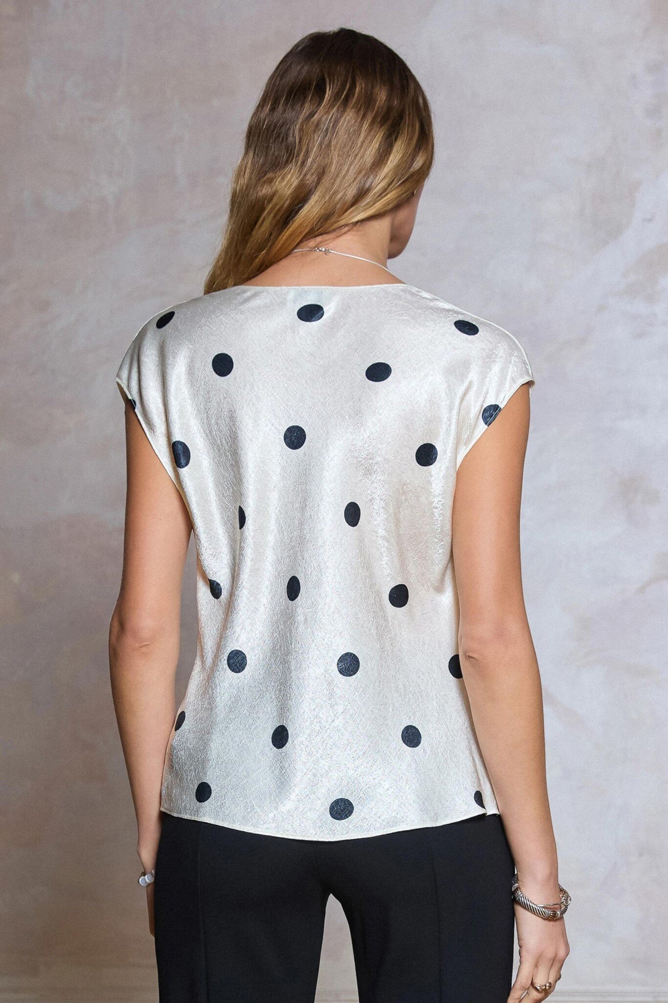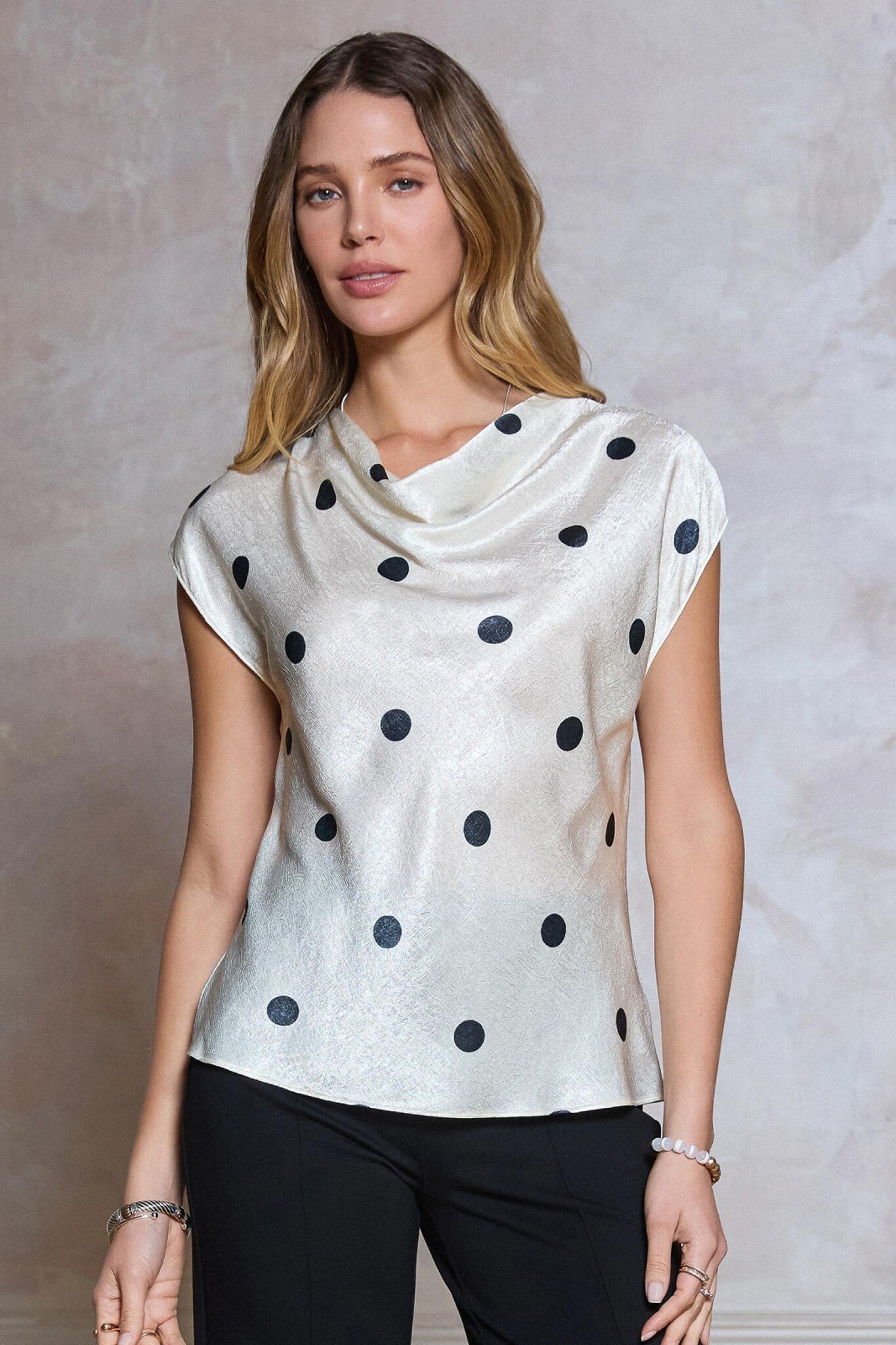 - Soft drape at front neckline