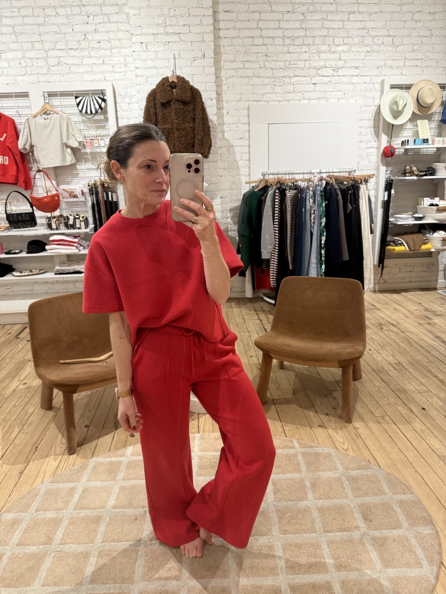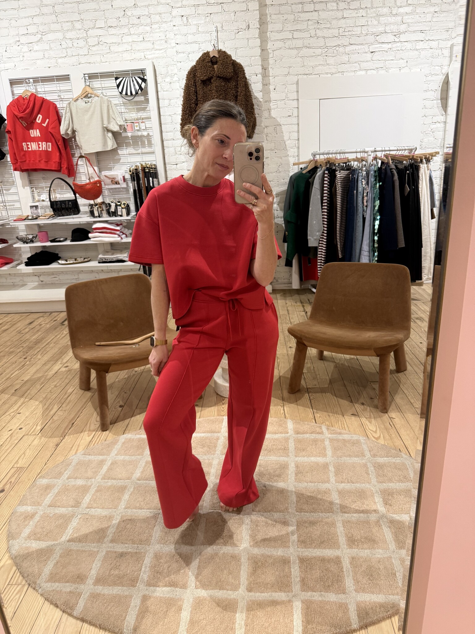 Relaxed yet refined, these wide leg knit pants feature a high rise fit, elongating front seams, and an easy pull-on waistband, delivering all-day comfort with a polished, elevated feel perfect for off-duty days. Pair back to the Tess Tee for a matching se