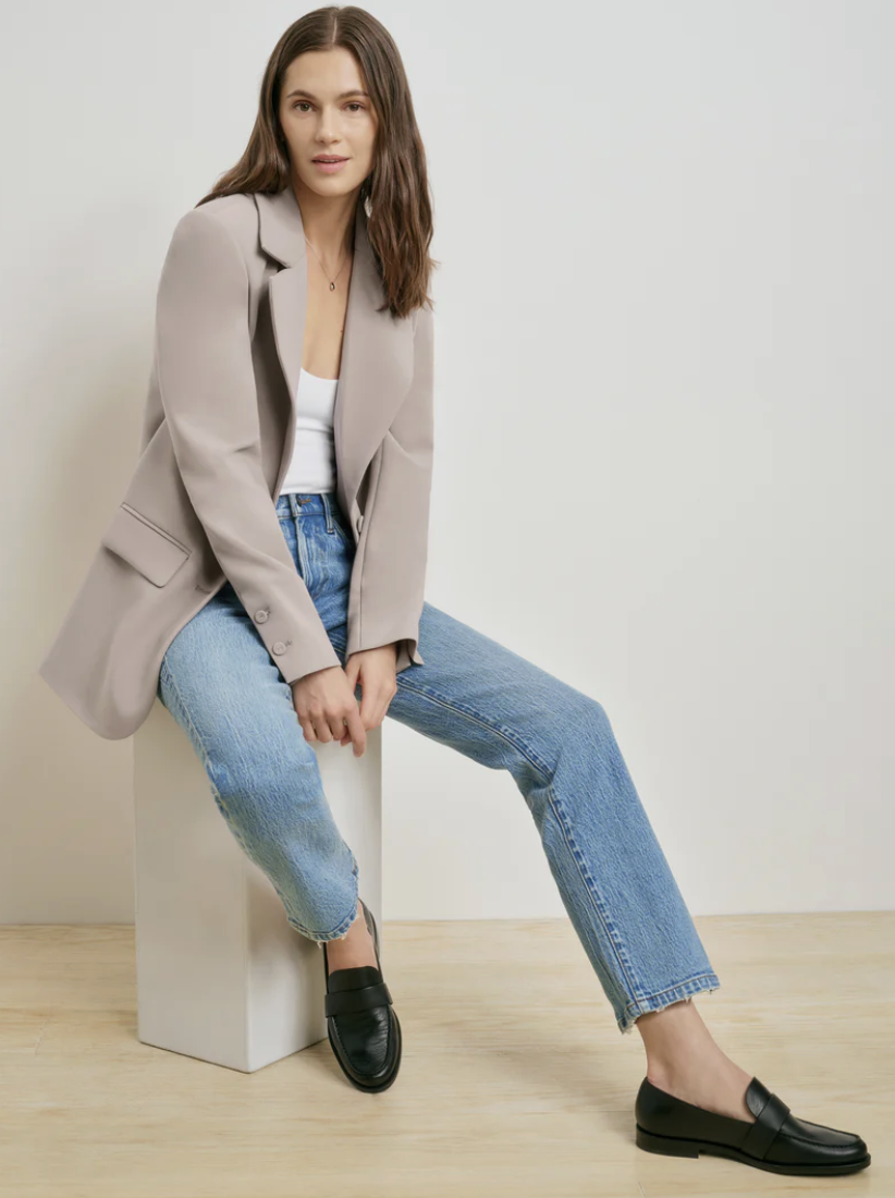 For a relaxed yet tailored look, The Favorite Oversized Blazer is your new go-to. It's made from a structured suiting blend that hits perfectly at the mid-hip (30.75" length) and is complete with self-covered buttons and front flaps.