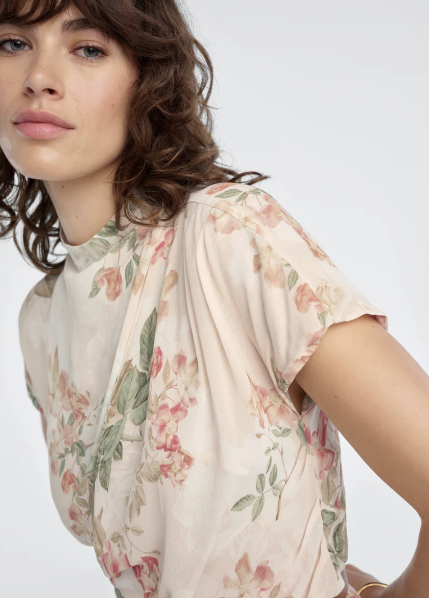 Drape neck top that pairs perfectly with the matching favorite skirt.