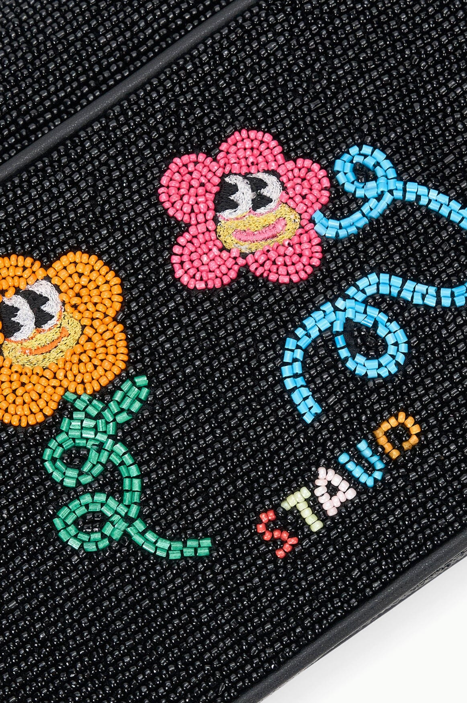 - Self: 100% Glass Beads, Base: 100% Rayon, Trim:100% Vegan Leather